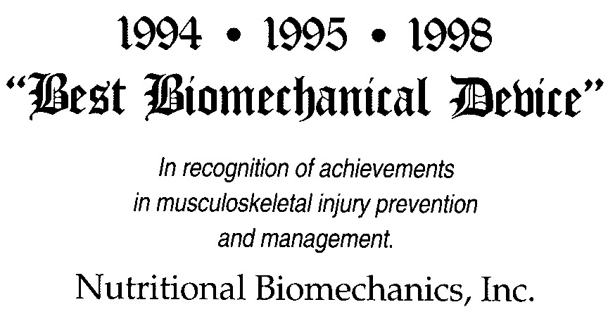 “Best Biomechanical Device” 1994 – 1995 – 1998; Recognized and presented by Nutritional Biomechanics